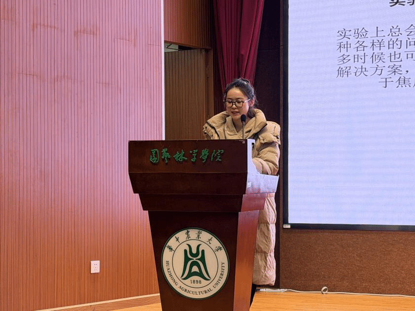 盛夏薇回顾了自己从本科阶段参与省级创新创业项目到研究生阶段专注草莓与西瓜研究的成长轨迹。她特别提到,曾经“每周六5:00起床开车去村里给西瓜打藤”的田间经历,让她深刻体会到科研离不开实践。她建议同学们在科研早期“大量阅读同类文章,做好文献标记与管理”,并学会“用别人的武器武装自己”,在借鉴中创新。